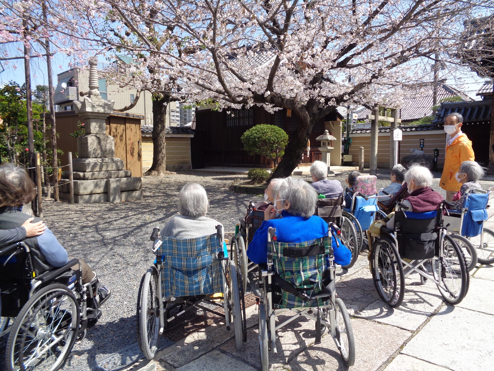 壬生老人ホームは京都市の中心部に位置する壬生寺境内にあります。壬生寺は、壬生狂言や節分詣で知られ、また新撰組の屯所跡なども近隣にあることから京都の観光地としても有名です。境内には保育園があり、普段から園児との交流も盛んで、地域の方が集う環境の中にあります。